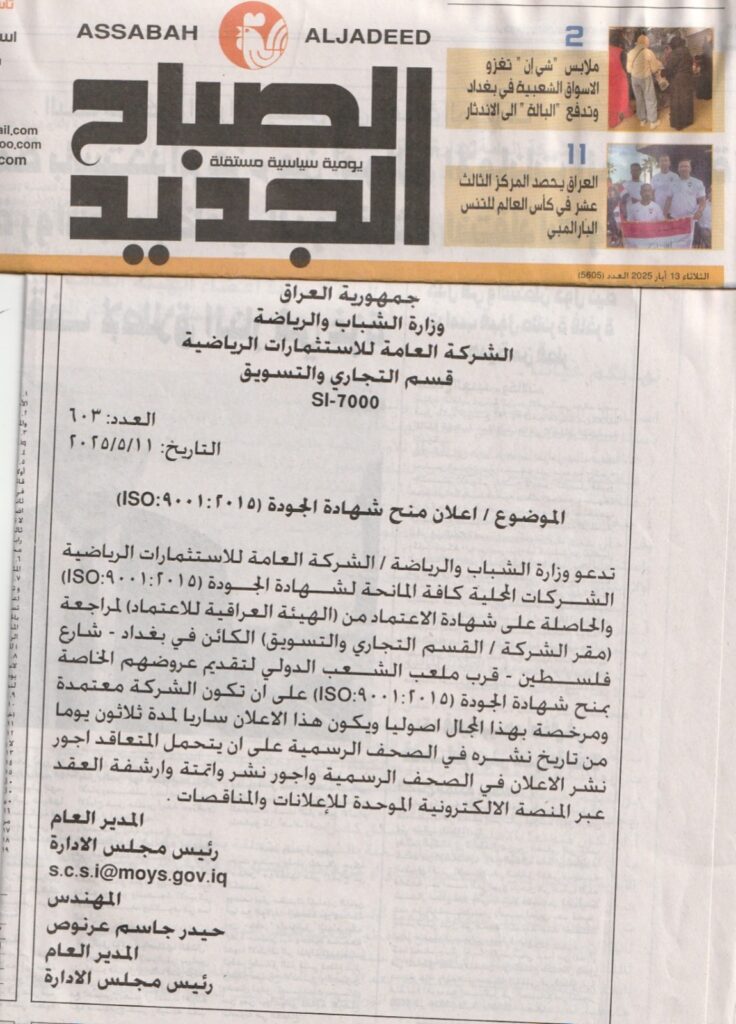 تصميم وزارة الشباب و الرياضة / قسم تكنولوجيا المعلومات