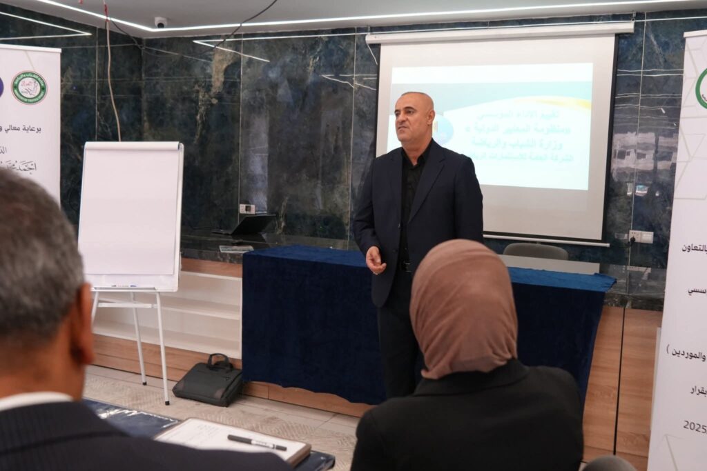 أطلقت وزارة الشباب والرياضة – الشركة العامة للاستثمارات الرياضية، بالتعاون مع الأمانة العامة لمجلس الوزراء ومكتب الوزير / قسم تقويم الأداء المؤسسي، الدورة التدريبية للبرنامج التطويري الموسوم “منظومة المعايير الدولية / معيار الشركاء والموردين”، وذلك وفقاً للمعايير المعتمدة بقرار مجلس الوزراء رقم (114) لسنة 2018، في محافظة كربلاء المقدسة، وبمشاركة موظفي الشركة العامة للاستثمارات الرياضية وأعضاء مجلس إدارتها.