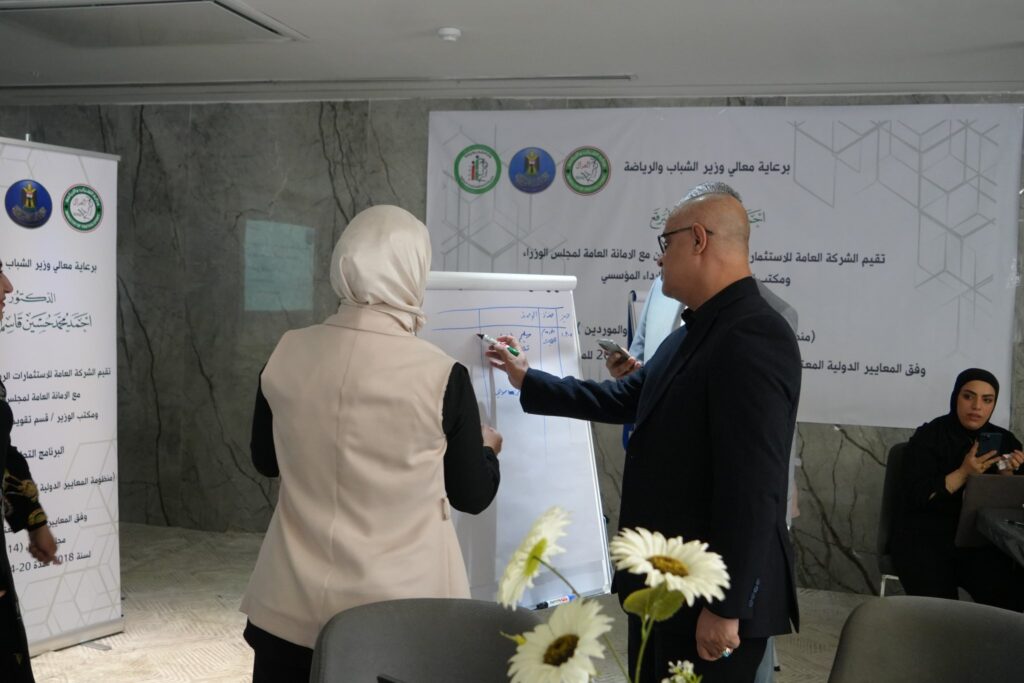 اختتمت وزارة الشباب والرياضة – الشركة العامة للاستثمارات الرياضية، وبالتعاون مع الأمانة العامة لمجلس الوزراء، ومكتب الوزير / قسم تقويم الأداء المؤسسي، البرنامج التدريبي التطويري لمنظومة المعايير الدولية في تقويم الأداء المؤسسي – معيار الشركاء والموردين، والذي أقيم في مدينة كربلاء المقدسة للمدة من 20 إلى 24 تموز الجاري، بحضور المدير العام للشركة السيد حيدر جاسم عرنوص، وعدد من موظفي الوزارة وأعضاء مجلس الإدارة.