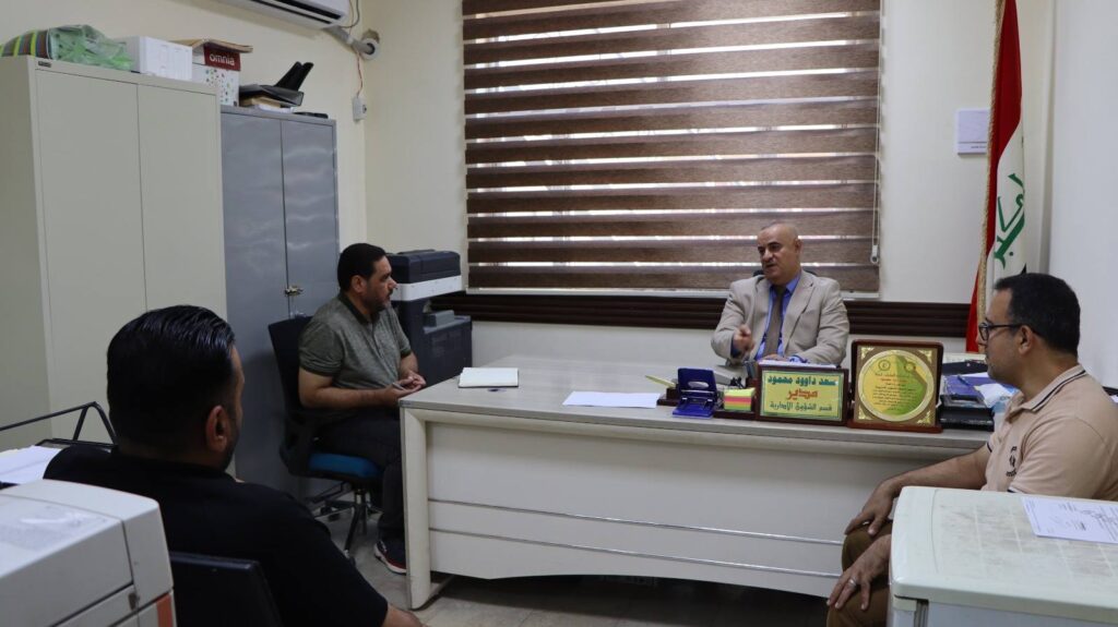 اجرى مدير عام الشركة العامة للاستثمارات الرياضية، المهندس حيدر جاسم عرنوص، زيارة تفقدية لاقسام الشركة، لمتابعة سير العمل، والاطلاع على واقع العمل، والاستماع الى ملاحظات الموظفين داخل الشركة.